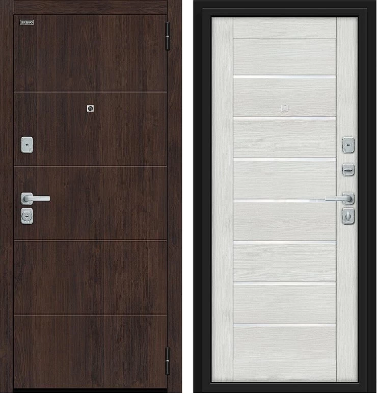 Надежная входная Дверь Браво Прайм/BChrome Almon/Bianco Melinga премиум класса по цене 39 435 руб. Большая толщина стали защитит от проникновения в ваш дом, квартиру или коттедж. Используется очень качественная фурнитура: замки, цилиндры, ручки, защелки. Покрытие и отделка двери изготовлено под внимательным контролем производителя. Дверь имеет долгий срок службы и гарантию.